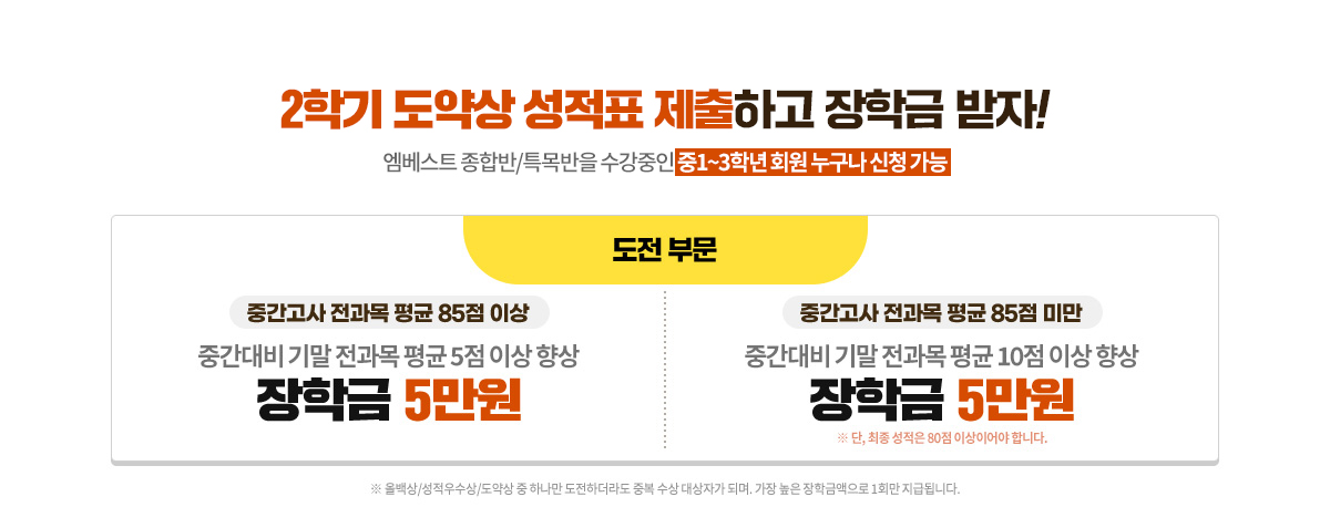 - ¨ç ÀåÇлý ´ë»óÀÚ´Â ¼ºÀûÇ¥ Á¦Ãâ ¸¶°¨ÀϱîÁö ¿¥º£½ºÆ® Á¾ÇÕ¹Ý/Ư¸ñ¹Ý ¼ö°À» À¯ÁöÇØ¾ß ÇÕ´Ï´Ù.