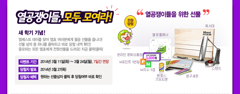 8¿ù 2Çб⠿­°øÀÀ¿ø ¼±¹° ½ð´Ù! 2014.08.11(¿ù) ~ 2014.08.31(ÀÏ)