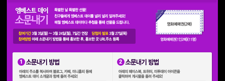 3¿ù ¿¥º£½ºÆ® µ¥ÀÌ Ã¹ ¹øÂ° ½ÃÀÛ, ¸Å¿ù 11ÀÏ! ¸ðµÎ ¸ð¿©¶ó!! 2014.03.11(È­) ~ 2014.03.17(¿ù)