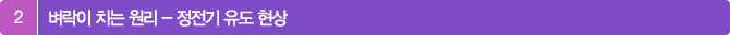 ¹ø°³´Â ÀÏÁ¾ÀÇ ´ë±â ÁßÀÇ ¹æÀüÇö»óÀÔ´Ï´Ù. ¹æÀüÀ̶õ Àü±â¸¦ ¶ì´Â ¹°Ã¼°¡ °¡Áö°í ÀÖ´Â Àü±â¸¦ ¹æÃâÇÏ´Â Çö»óÀÔ´Ï´Ù. ±×·³ ¾î¶»°Ô Çϴÿ¡¼ ¶¥À¸·Î º¶ôÀÌ Ä¡´Â °É±î¿ä? Àü±â°¡ Àß È帣´Â ¼ºÁúÀ» °¡Áø µµÃ¼(Óôô÷)ÀÇ ÇÑÂÊ ³¡¿¡, - ÀüÇÏ (¹°Ã¼°¡ ¶ì°í ÀÖ´Â Àü±â)·Î ´ëÀü(¾î¶² ¹°Ã¼°¡ Àü±â¸¦ ¶ï)µÈ ¸·´ë¸¦ °¡Á®°¡¸é, µµÃ¼ ³»ÀÇ '+ ÀüÇÏ'¿Í '- ÀüÇÏ'°¡ ºÎÁö·±È÷ ¿òÁ÷¿© ¸·´ë¿Í °¡±î¿î ÂÊ¿¡ '+ ÀüÇÏ'°¡ ¸ðÀÌ°Ô µÇ¾î¿ä. µµÃ¼¿¡¼ ¸Õ ÂÊ¿¡´Â'- ÀüÇÏ'µéÀÌ ¸ðÀÌ°Ô µÇÁö¿ä. À̸¦ Á¤Àü±â À¯µµ Çö»óÀ̶ó°í Çϴµ¥, ¹ø°³ÀÇ »ý¼º¿¡µµ ÀÌ Çö»óÀÌ ÀÛ¿ëÇÏ°Ô µË´Ï´Ù. Á¤Àü±â À¯µµ¿¡ ´ëÇØ¼´Â Áß2¶§ ¹è¿ì´Â ³»¿ëÀÌÁö¿ä.